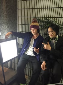カワサキプロさんとうさjun、入口横にて。うさjun大喜びw いつもカワサキさんの話をしています。いつも有り難う御座います‼︎